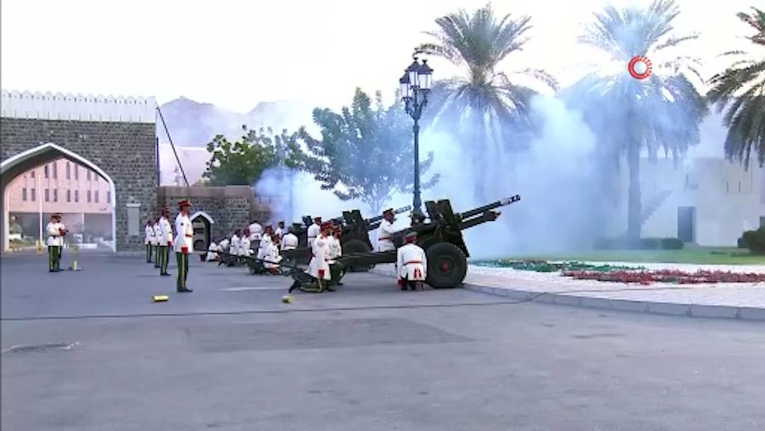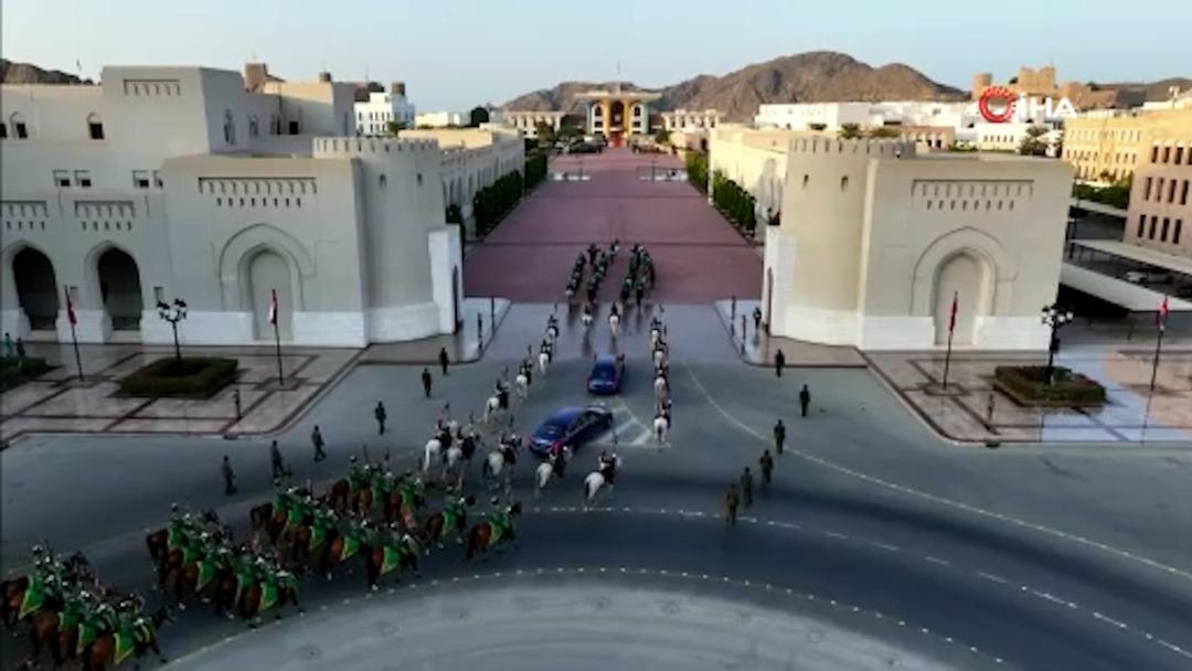 Erdoğan'ın Al Alam Sarayı'na girişinde 21 pare top atışı yapıldı. Cumhurbaşkanı Erdoğan, aracından inerken Umman Sultanı Heysem bin Tarık tarafından karşılandı.