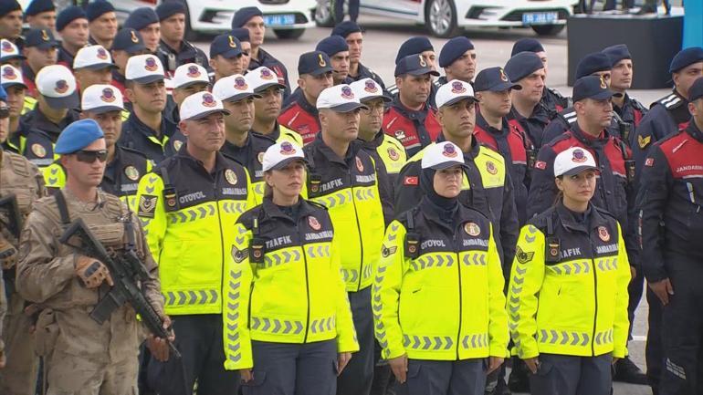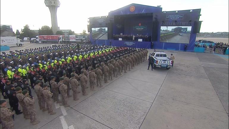 Cumhurbaşkanı Erdoğan, Atatürk Havalimanı'nda düzenlenen Jandarma, Emniyet ve Sahil Güvenlik Teşkilatı için 9 bin 200 yeni aracın hizmete alım törenine katıldı. Törende Cumhurbaşkanı Erdoğan’ın yanı sıra İçişleri Bakanı Ali Yerlikaya, milletvekilleri, İstanbul Valisi Davut Gül ve çok sayıda Jandarma, Emniyet ve Sahil Güvenlik Teşkilatı ekipleri katıldı.
