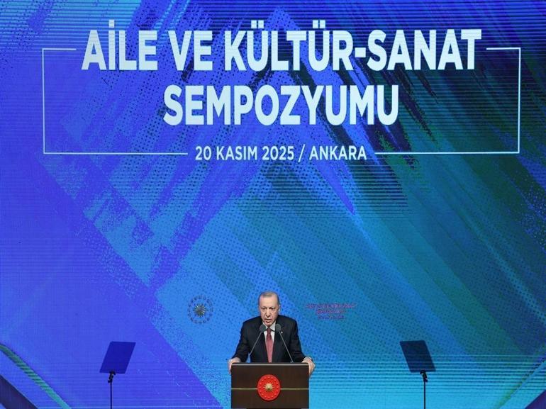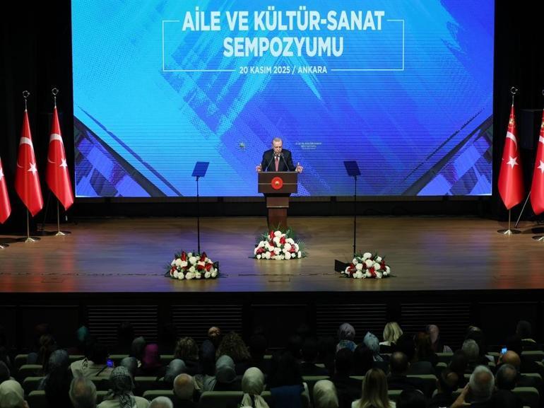 Cumhurbaşkanı Recep Tayyip Erdoğan, Beştepe Millet Kütüphanesi'nde düzenlenen 'Aile ve Kültür-Sanat Sempozyumu'nda konuştu. Cumhurbaşkanı Erdoğan, "Hem Kültür ve Sanat Kurulumuz hem de Aile Bakanlığımız kendi alanlarında son derece verimli, başarılı ve ufuk açıcı işlere imza atıyor. Dün başlayan ve bugün sizlerle birlikte kapanışını icra ettiğimiz Aile ve Kültür-Sanat Sempozyumu, bu çalışmalardan biridir. İki gün boyunca düzenlenen, 6 oturumda akademisyenlerimiz, bağımsız araştırmacılarımız, uzmanlarımız ve daha pek çok katılımcı bildirilerini tebliğ etti. Dijital kültürden sanat ve medyaya, aile içi iletişimden nüfus politikalarına, kentleşmeden aile sağlığına geniş bir renk paletinde birçok konu burada enine boyuna tartışıldı" dedi.