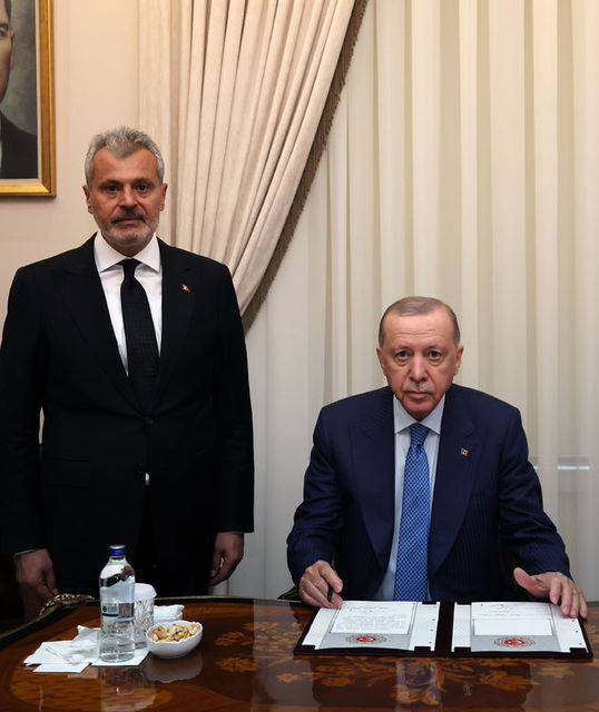 Belediye Başkanı Mehmet Öntürk tarafından karşılanan Erdoğan, belediyenin şeref defterini imzaladı.