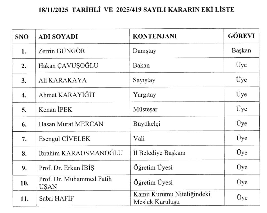 KAMU GÖREVLİLERİ ETİK KURULU BAŞKANLIĞI VE ÜYELERİ BELLİ OLDUResmi Gazete'de yayımlanan karara göre Kamu Görevlileri Etik Kurulu Başkanlığı ve üyeleri şu isimlerden oluşacak;