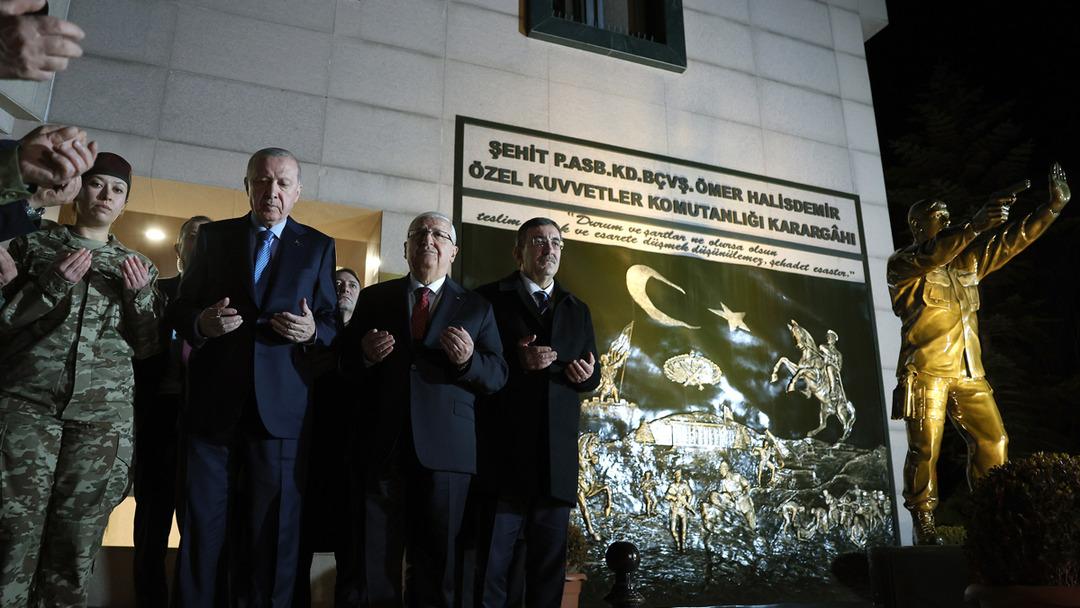 Cumhurbaşkanı Erdoğan ve beraberindekiler, Halisdemir ve tüm şehitler için Fatiha okudu. Cumhurbaşkanı Erdoğan'a, Cumhurbaşkanı Yardımcısı Cevdet Yılmaz ve Milli Savunma Bakanı Yaşar Güler de eşlik etti.