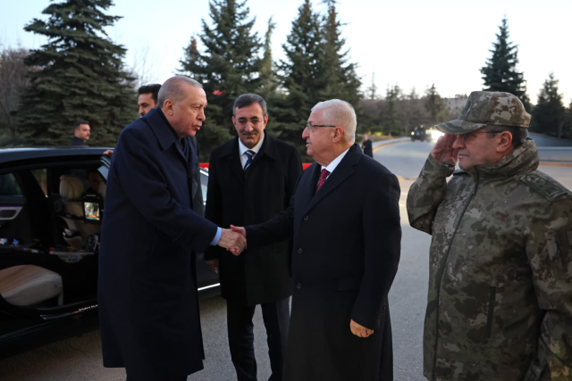 Cumhurbaşkanı Erdoğan'ı Özel Kuvvetler Komutanlığına gelişinde Milli Savunma Bakanı Yaşar Güler askeri törenle karşıladı.