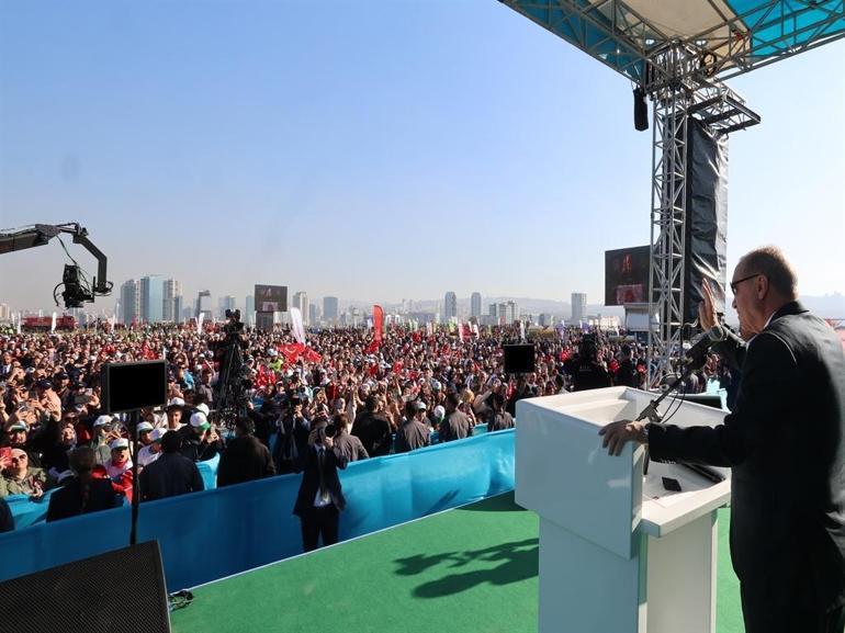 Cumhurbaşkanı Erdoğan, "Her zaman söylüyorum; biz, 'yarın kıyametin kopacağını bilseniz bile elinizdeki fidanı dikin' buyuran bir inancın mensuplarıyız. Çevre kirliliği ve iklim değişikliğinin hepimizin hayatını doğrudan etkilediği bir süreçte tabiatın korunmasına daha fazla önem vermemiz gerekiyor. Biz ormanlarımızı sadece ağaç olarak değil, nefes olarak, yaşam kaynağı olarak görüyoruz. Bu nedenle 2053 net sıfır emisyon hedefimiz ve yeşil kalkınma devrimi vizyonumuz doğrultusunda gerekli adımları atıyoruz" diye konuştu.