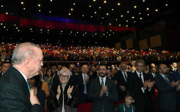 Cumhurbaşkanı Erdoğan, "Türkiye, dış politikasıyla, demokrasisiyle, savunma sanayiiyle, ekonomisiyle ve içeride-dışarıda attığı kararlı adımlarla artık küresel bir güce dönüşüyor. Bugün ‘barış’ denince, ‘huzur’ denince, ‘istikrar’ denince akla ilk Türkiye geliyor. Şefkat ve merhamet, adalet denince zihinlerde ilk bu aziz millet beliriyor. Sahada ve masada güçlü Türkiye gerçeğini, dost-düşman fark etmeksizin bugün herkes kabul ediyor, bunu açıkça dillendirmek zorunda kalıyorlar. Suriye’den Gazze’ye, Körfez’den Rusya - Ukrayna arasındaki çatışmalara kadar hiçbir yerde Türkiye’ye karşı basit bir denklem kurulamıyor. Artık hem bölgede hem dünyada sözüne itibar edilen, çevresine uzun vadeli istikrar ihraç eden bir Türkiye var. Barışın, kardeşliğin, kalkınmanın ve adaletin egemen olduğu ‘Türkiye Yüz Yılı’ vizyonumuzu kubbeden fiile çıkarma yolunda tarihi bir eşikteyiz. AK Parti ve Cumhur İttifakı olarak bütün enerjimizi, bütün dikkatimizi bu hedefe yoğunlaştırmış durumdayız" dedi.