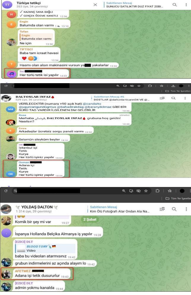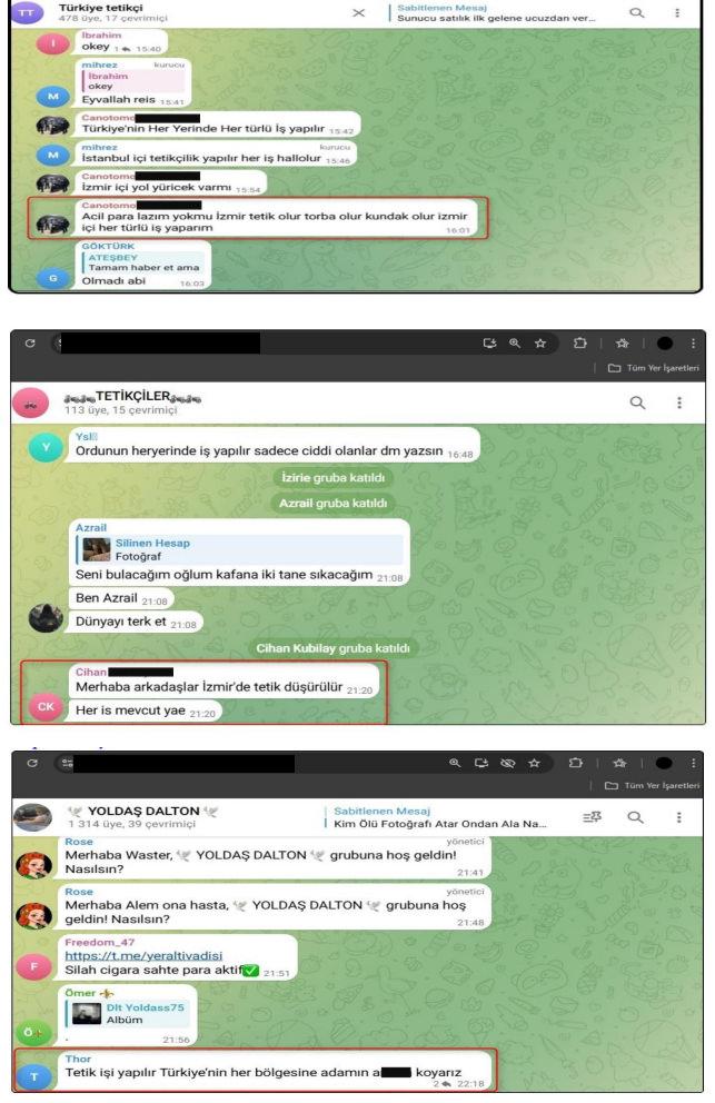 Suç örgütleri arasındaki husumet ve rekabeti sosyal medya mecralarına taşımaya çalıştıkları saptandı. Bu paylaşımlarla suç faaliyetlerinin normal olduğu algısını oluşturmak istedikleri ortaya çıktı. Sosyal medyayı bir araç olarak kullanıp suç örgütüne yeni eleman kazandırmaya çalıştıkları tespit edildi. İletişim platformlarında oluşturulan gruplar vasıtasıyla 'tetikçi' temin etme ya da 'tetikçilik' işi yapmaya yönelik paylaşımlar yaptıkları belirlendi.