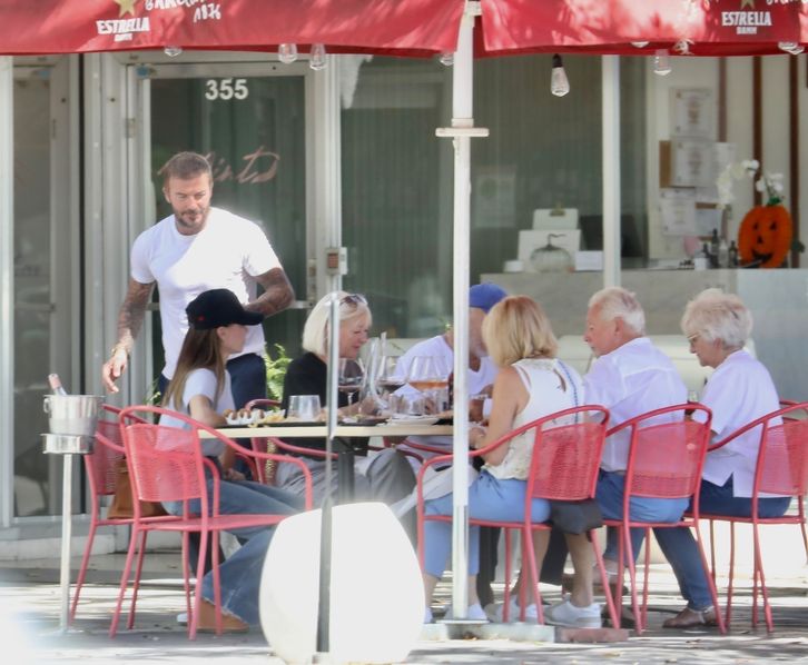Beckham ailesi, güneşli günde açık havada yemek yerken ve sohbet ederken mutlu bir görüntü verdi.