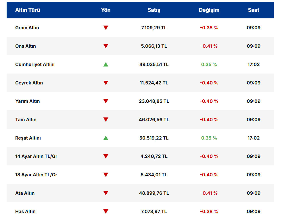 ONS VE GRAM ALTINDA GÜNCEL RAKAMLAROns Altın yeni güne 5 bin 87 dolar seviyesinden giriş yaptı. Günlük işlemlerde en düşük 5 bin 45 dolar, en yüksek ise 5 bin 100 dolar seviyeleri test edildi. Değerli metal şu dakikalarda 5 bin 57 dolar bandında dengeleniyor. Yurt içinde Gram Altın fiyatları ise güne 7 bin 137 lira seviyesinden başladı. Gün içerisinde en düşük 7 bin 79 lira, en yüksek 7 bin 155 lira seviyelerini gören Gram Altın, 7 bin 95 lira seviyesinden alıcı buluyor.