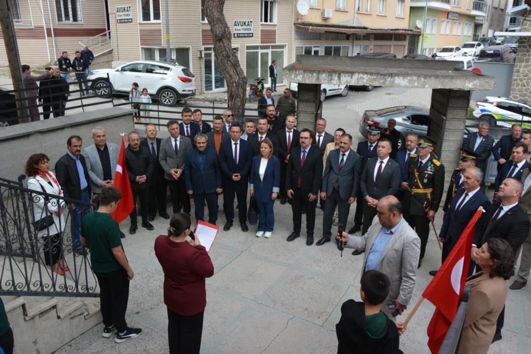 29 Ekim 1928 yılında dönemin Kaymakamı Necmettin Bey, Belediye Başkanı Mehmet Hilmi Bey, Mahkeme Reisi Vacid Bey, ilçe protokolü ve öğrencilerle birlikte çekilen fotoğraf, 97 yıl sonra aynı noktada bugünün temsilcileriyle yeniden ölümsüzleştirildi.