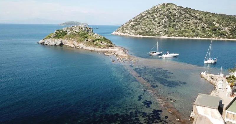 DHA'nın haberine göre Gümüşlük Mahallesi'ndeki ve Tavşan Adası'na kadar uzanan ve halk arasında 'Kral Yolu' olarak bilinen tarihi sur yolları, denizin çekilmesiyle yeniden ortaya çıktı.