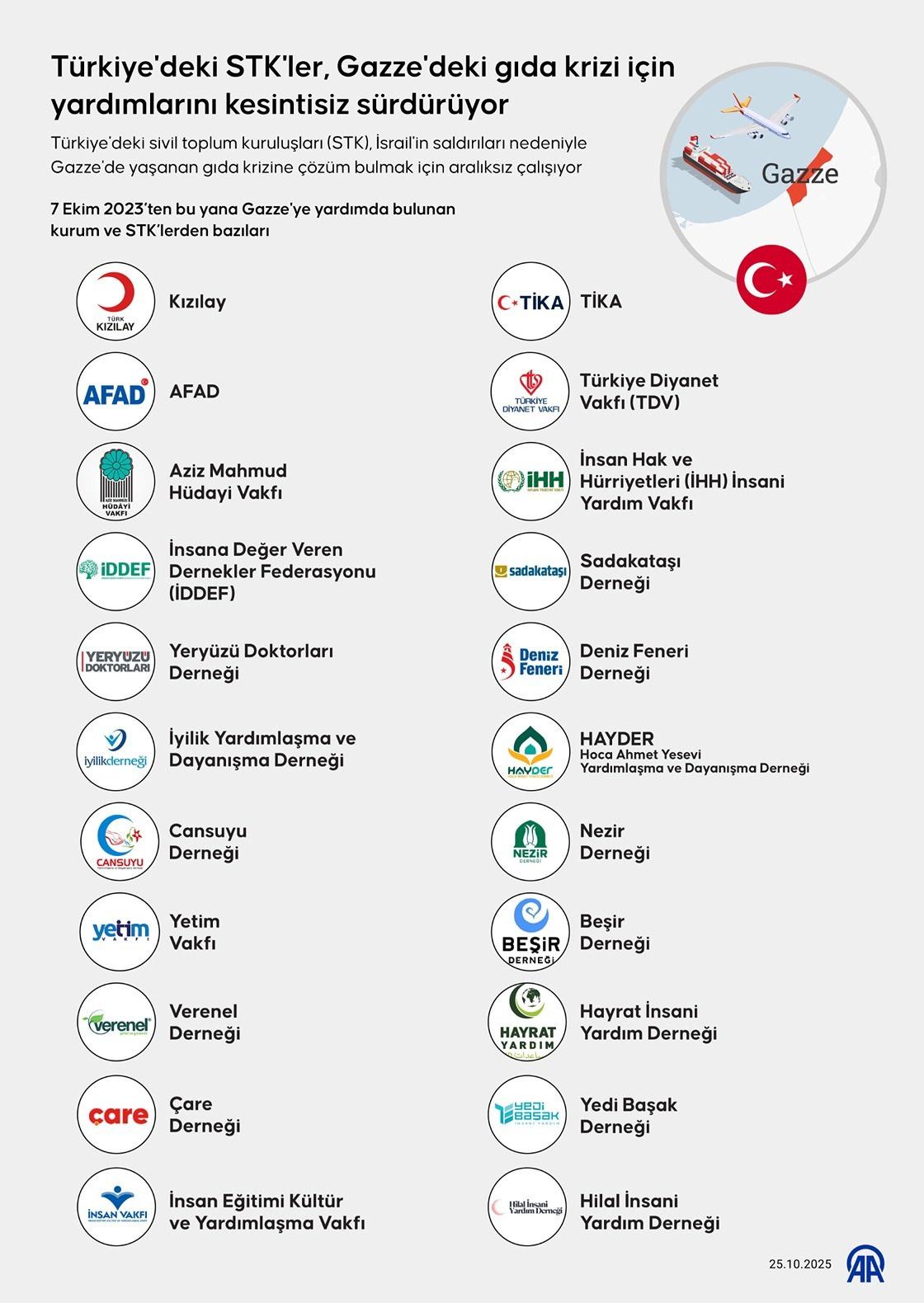 İşgalci İsrail'in saldırılarını tüm platformlarda dünyaya duyuran ve katliamın durması için en çok diplomatik çabayı sarf eden Türkiye ve STK’ları Gazze'nin yardımına koştu.