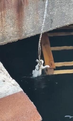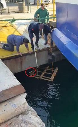 Denize düşen yavru kediler halat ve kayıkla kurtarıldı; o anlar kamerada