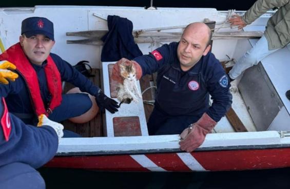 Erdek Limanı’nda denize düşen yavru kedileri görenler, hayvanların üstüne çıkması için denize palet atıp, itfaiyeye haber verdi. Kedilerden biri palete tutunarak sürüklenmekten kurtuldu. Diğer yavru kedi için Sahil Güvenlik ekipleri devreye girdi. Sürüklenen kedi, Sahil Güvenlik ve itfaiye ekipleri tarafından kayığa alınırken, palete tutunan kedi için itfaiye ekipleri hayat uzattı. Halata tutunan kedi, çekilerek denizden çıkarıldı. O anlar, çevredekiler tarafından cep telefonu kamerasıyla görüntülendi.
