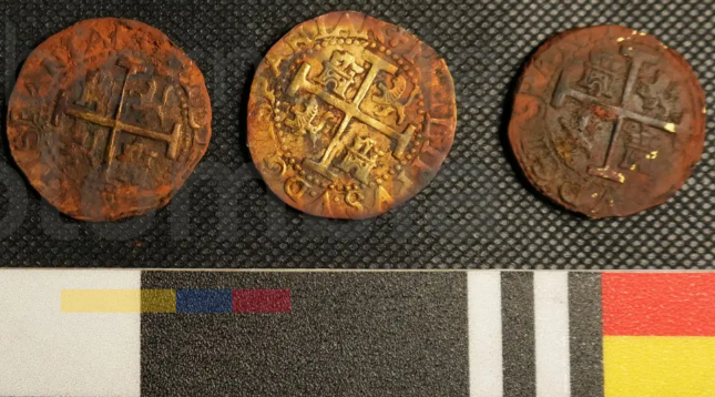 Antiquity dergisinde yayımlanan 2025 tarihli yeni bir çalışma, uzaktan kumandalı su altı araçlarının (ROV) çektiği yüksek çözünürlüklü fotoğraflarla hazinenin detaylarını ortaya koydu. Deniz arkeoloğu Daniela Vargas Ariza liderliğindeki ekip, gemide "macuquina" (İngilizcesi cob) adı verilen, altın veya gümüş külçelerden elle kesilerek basılmış düzensiz şekilli sikkeler tespit etti. Bu sikkeler, iki yüzyılı aşkın süre boyunca Amerika kıtasının ana para birimiydi.