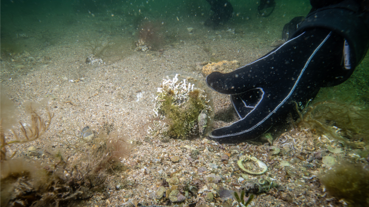 İzleme çalışmalarında yer alan, proje yürütücüsü Piri Reis Üniversitesi Denizcilik Fakültesi Öğretim Üyesi Prof. Dr. Mustafa Sarı, alanda dalış yapıp pina ve deniz çayırlarının gelişini inceleyerek, ölçüm yaptı.