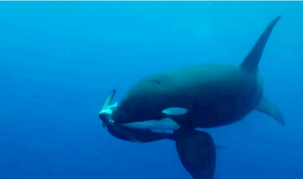 Olay, Meksika kıyıları açıklarında, Pasifik Okyanusu'nda yaşandı. 37 yaşındaki yaban hayatı rehberi ve su altı kameramanı Evans Baudin, yüzeyden takip ettiği bir orka ailesinin davranışlarının aniden değiştiğini fark etti. Orkalar, birkaç saniye önce sakin şekilde yüzerken bir anda avlanma moduna geçti.