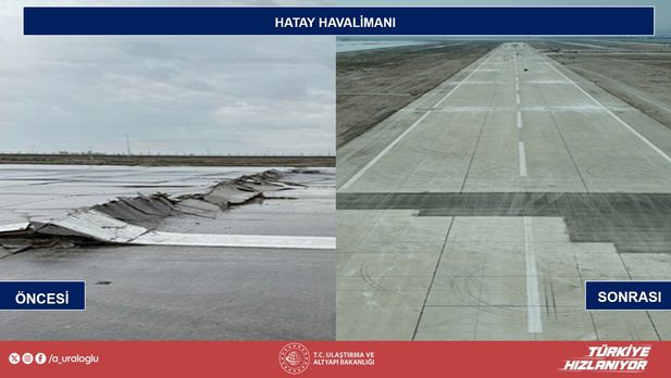 HATAY HAVALİMANI'NDA YARDIMCI PİST HİZMETE ALINDI Hatay Havalimanı’nın 3 bin metrelik ana pistinde depremden dolayı ağır hasar oluştuğunu anımsatan Uraloğlu, Öncelikle insani yardım ve tahliye uçuşlarının kullanımı için gerekli çalışmaları hızla yaparak pisti kısa sürede hizmete aldıklarını ifade etti.