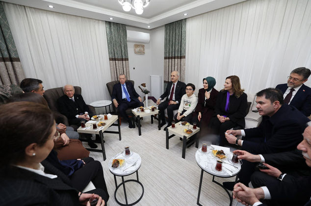 Erdoğan'a ziyaretinde, TBMM Başkanı Numan Kurtulmuş, MHP Genel Başkanı Devlet Bahçeli, Çevre, Şehircilik ve İklim Değişikliği Bakanı Murat Kurum, Aile ve Sosyal Hizmetler Bakanı Mahinur Özdemir Göktaş, Tarım ve Orman Bakanı İbrahim Yumaklı ile AK Parti Osmaniye Milletvekili Derya Yanık da eşlik etti.