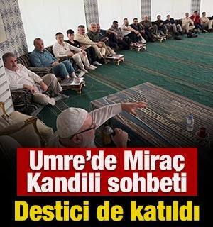 Yatsı namazının ardından Mescid-i Nebevi avlusunda cemaatle sohbet eden Destici, Miraç Kandili dolayısıyla vatandaşların kandilini tebrik ederek lokum ikramında bulundu.
