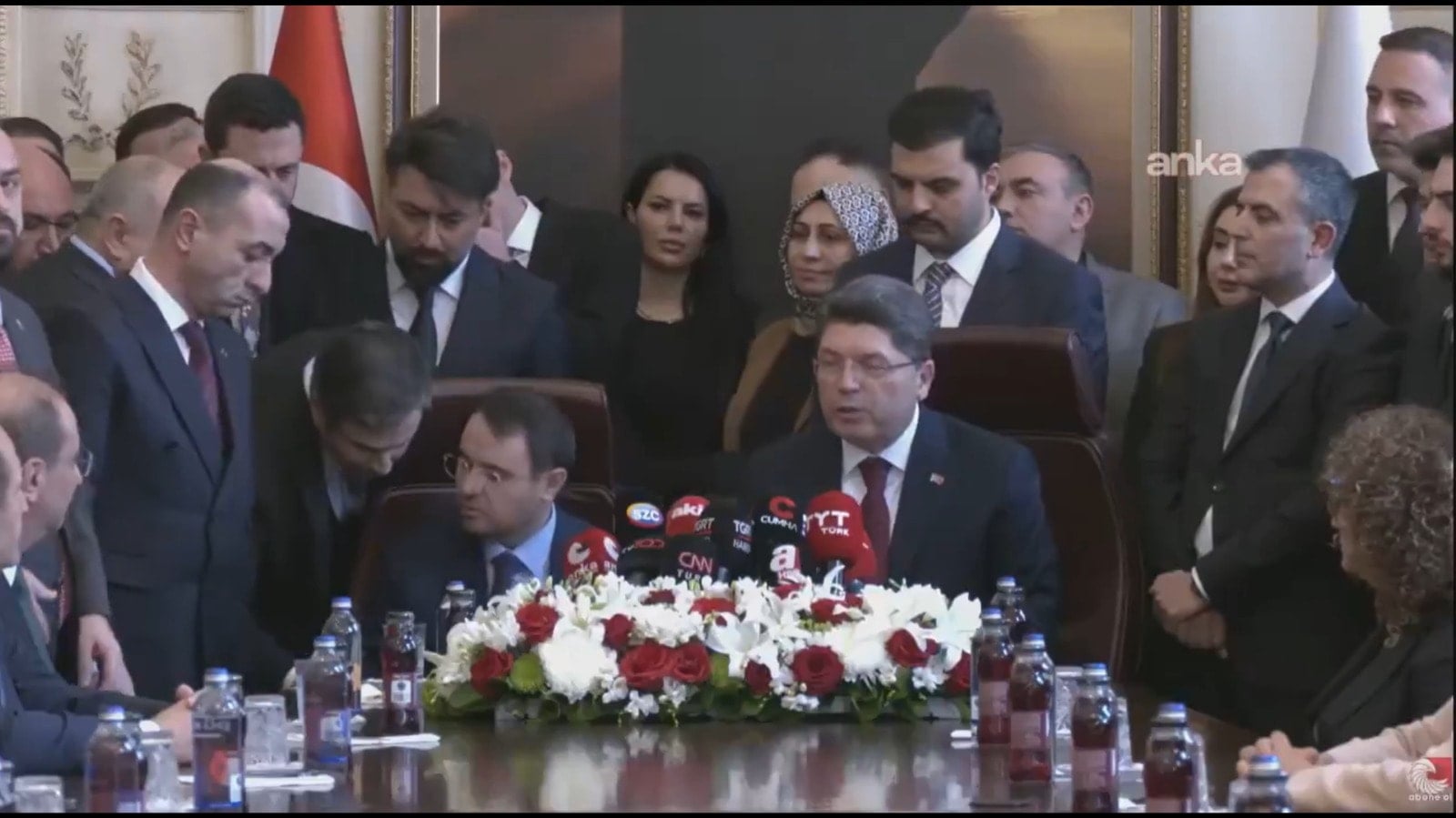 Yeni Adalet Bakanı Akın Gürlek ile görevden alınan Yılmaz Tunç'un oturduğu koltukların eşit seviyede olmaması danışmanların dikkatini çekti. Gürlek'in çok daha alçak bir koltukta olması nedeniyle danışmanlar, Gürlek'in koltuğunu yükselterek duruma müdahale etmeye çalıştı.