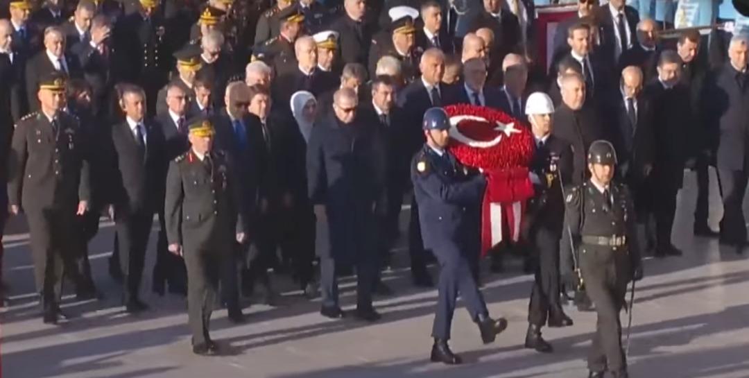 Cumhurbaşkanı Recep Tayyip Erdoğan önderliğinde, TBMM Başkanı, bakanlar, Türk Silahlı Kuvvetleri komuta kademesi ve siyasi parti temsilcileri Aslanlı Yol’dan mozoleye yürüdü.