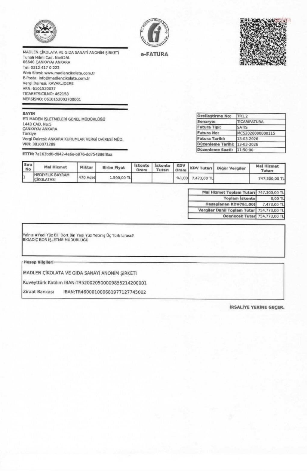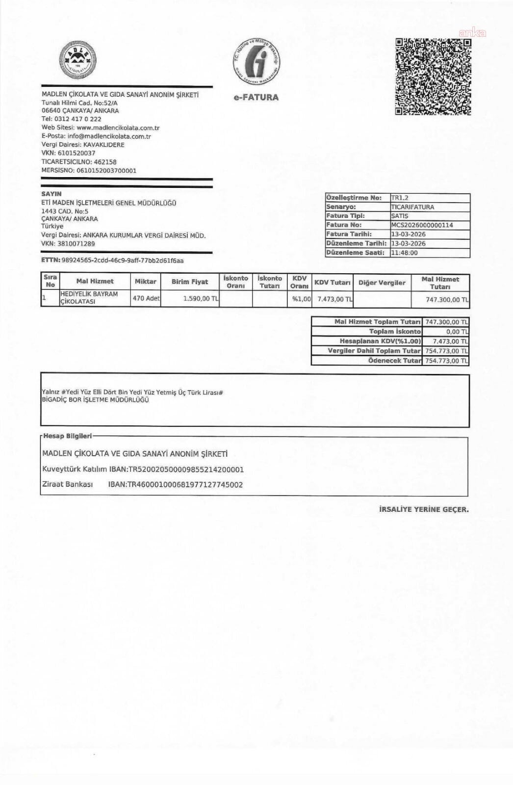 "AKP’nin bayram vurgunu! Tüm Türkiye ekonomik kriz altında ezilirken; Eti Maden Genel Müdürlüğü’nün bayram çikolatası alımı için 14 Milyon 306 bin lira harcama yaptığını tespit ettik. Kamu kaynağıyla binlerce kutu çikolata satın almak ayan beyan kamu zararıdır! 17.05.2024 tarihli Cumhurbaşkanlığı Tasarruf Tedbirleri Genelgesi ortadayken, böyle bir alımın yapılması; Enerji ve Tabii Kaynaklar Bakanı ve Eti Maden Genel Müdürünün de, CB Tayyip Erdoğan’ı takmadığının ispatıdır. Satın alınan 8 bin 180 adet çikolata kutusunun, Eti Maden’deki personel sayısının iki katı olması ayrı bir soru işaretidir. Bunun adı bayram vurgunudur! İşte faturalar. Kaynak: Eti Maden’in bayram çikolatası alımına ilişkin 10 adet fatura, CB Tasarruf Tedbirleri Genelgesi."