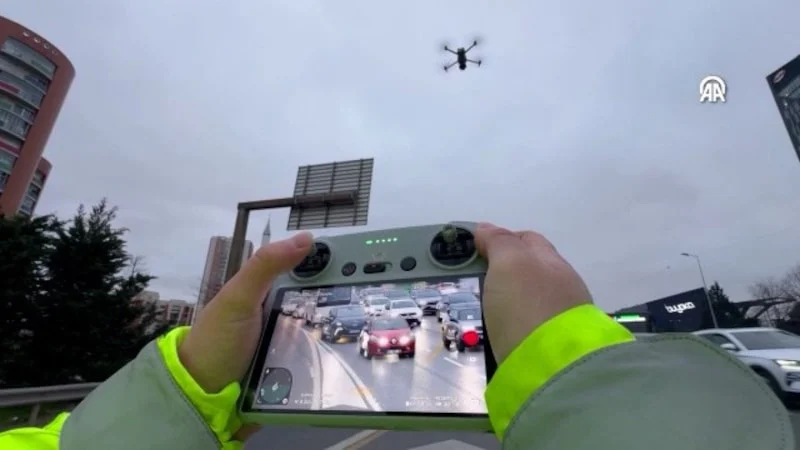 İstanbul’da trafik ekipleri, dron desteğiyle taralı alan ihlallerine yönelik denetim yaptı.