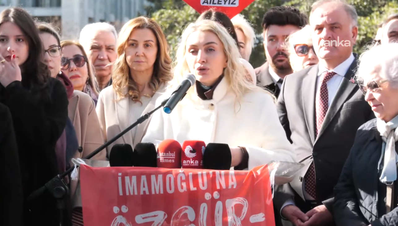 19 Mart operasyonunda gözaltına alınarak isimlerin yakınları tarafından kurulan Aile Dayanışma Ağı, 26. buluşmasını Saraçhane Parkı’nda gerçekleştirdi. Buluşmada, İBB Başkanı ve Cumhurbaşkanı Adayı Ekrem İmamoğlu’nun eşi Dilek İmamoğlu da konuşma yaptı.