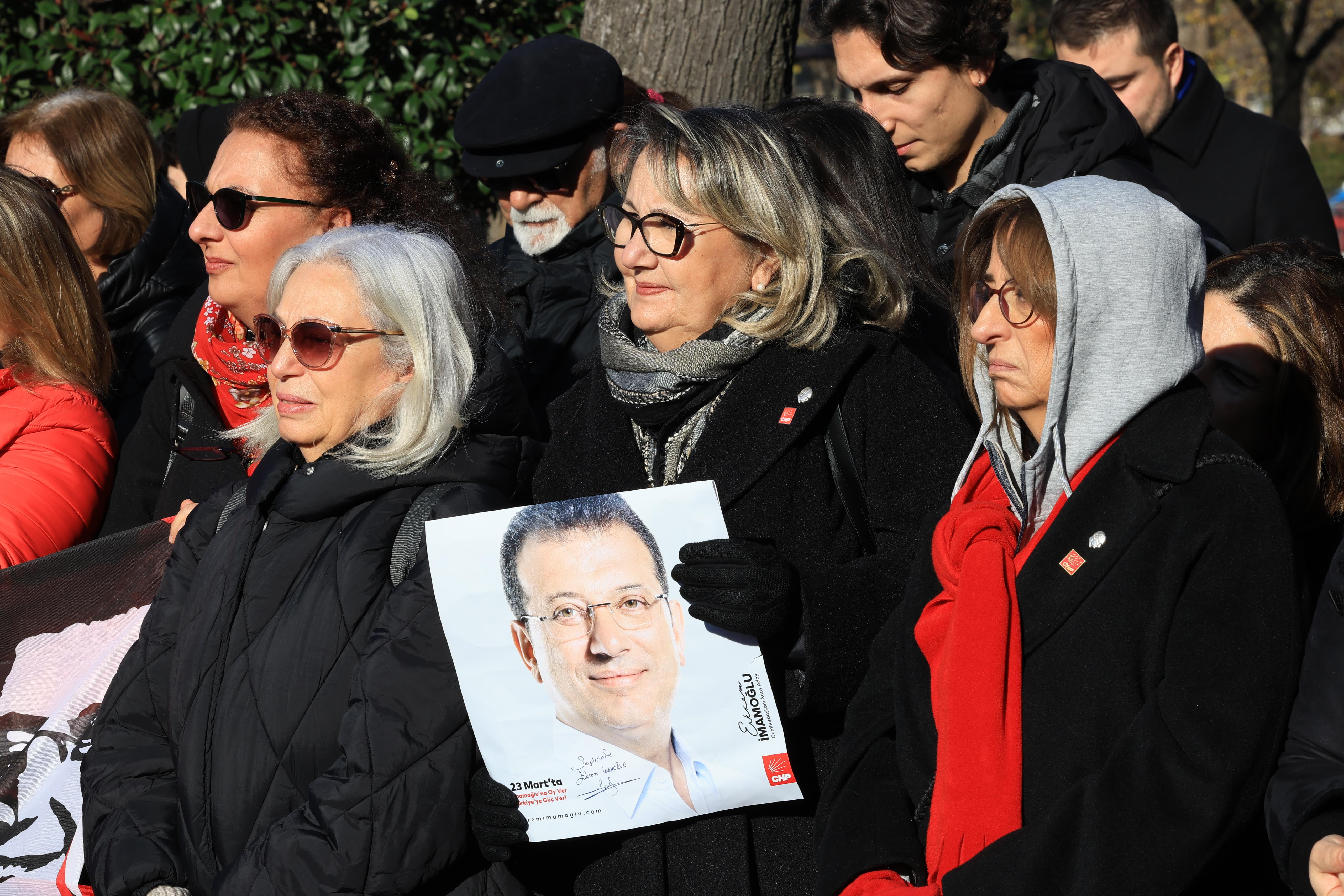 KADIN CİNAYETLERİNE VURGU YAPTIAçıklamayı Ekrem İmamoğlu'nun eşi Dilek İmamoğlu okudu. Hukuksuzluklara alışmadıklarını söyleyen İmamoğlu, "Hukuk işlemediğinde, yargı masumları cezalandırıp, suçluları koruduğunda, adalet terazisi kırıldığında; bu çürüme evlerimize, sokaklarımıza, sofralarımıza kadar yayılıyor. Ve bu çürümenin en ağır bedelini ne yazık ki kadınlar ödüyor. 2025 yılında bu ülkede en az 391 kadın, erkekler tarafından öldürüldü. Bu kadınların yarısından fazlası, en güvende olmaları gereken yerde, kendi evlerinde, en çok güvenmeleri gereken kişiler tarafından katledildi. Kadına yönelik şiddeti, kadın cinayetlerini hukuktan bağımsız düşünemeyiz. Çünkü cezasızlık, şiddeti büyütür. Çünkü adaletsizlik, ölüm getirir” dedi.