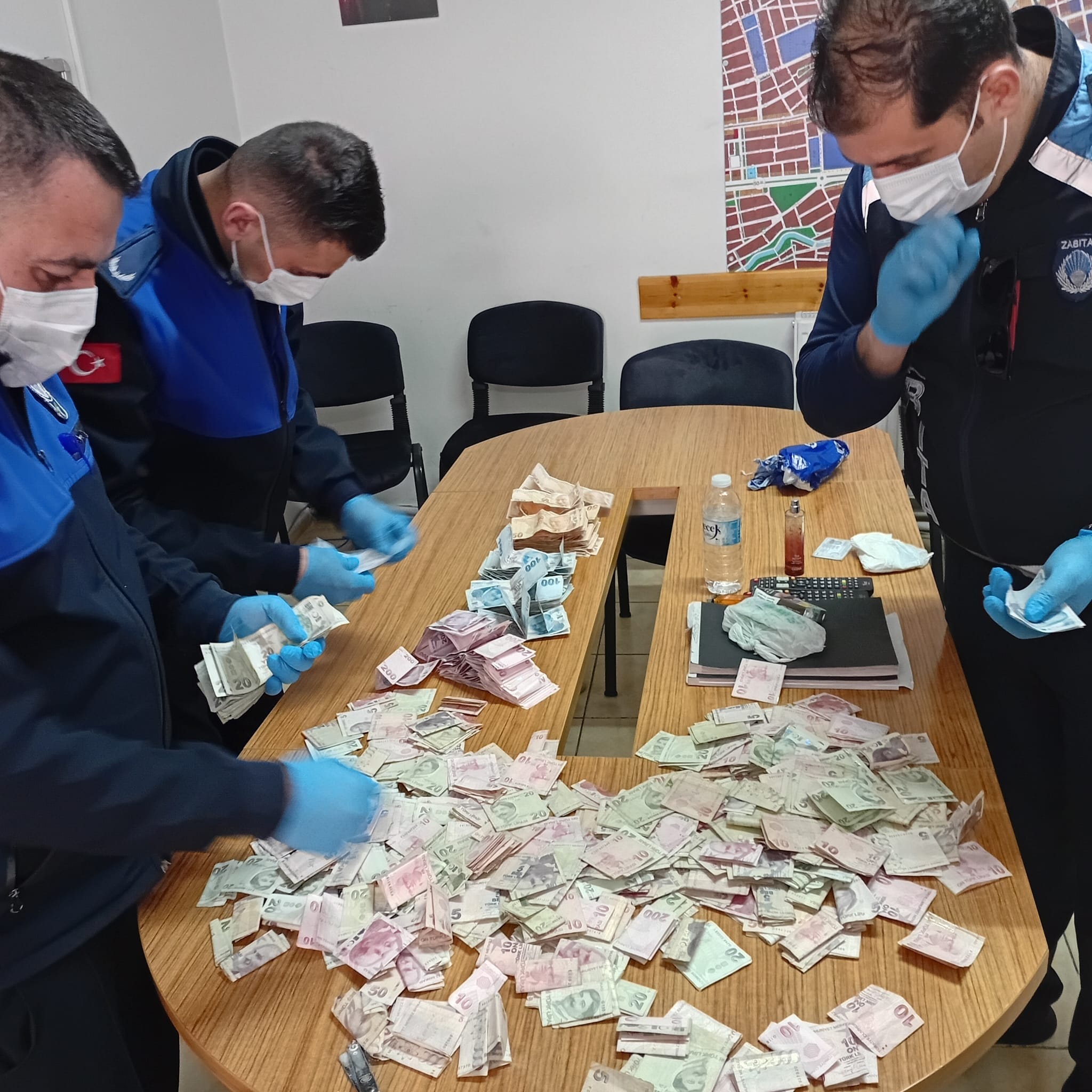 Günlük kazanç olarak değerlendirilen paraya el konulurken, Y.G.’ye Kabahatler Kanunu kapsamında idari para cezası uygulandı. (DHA)