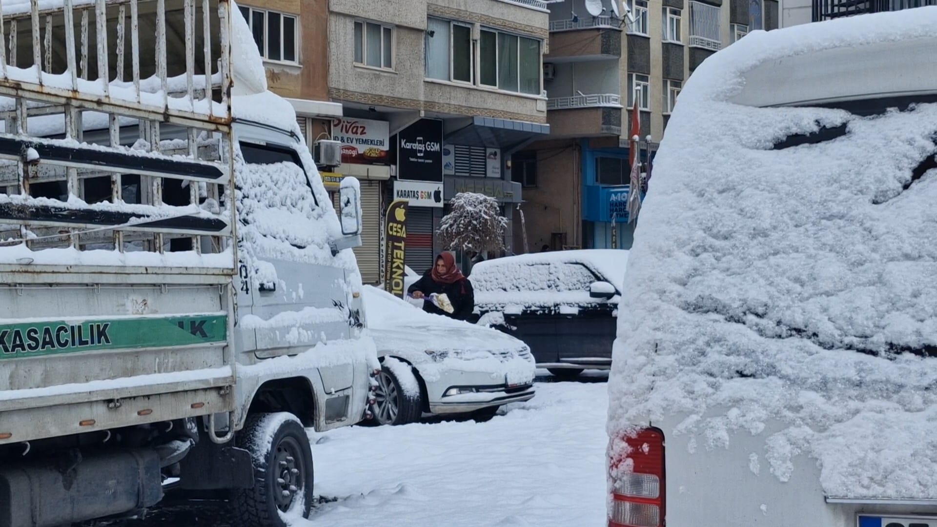 İş yerinin önünü temizleyen Hikmet Savaş, "Bu sabah karla uyandık. Kar berekettir, kaldırımları temizledik. Havalar soğuktur" dedi.