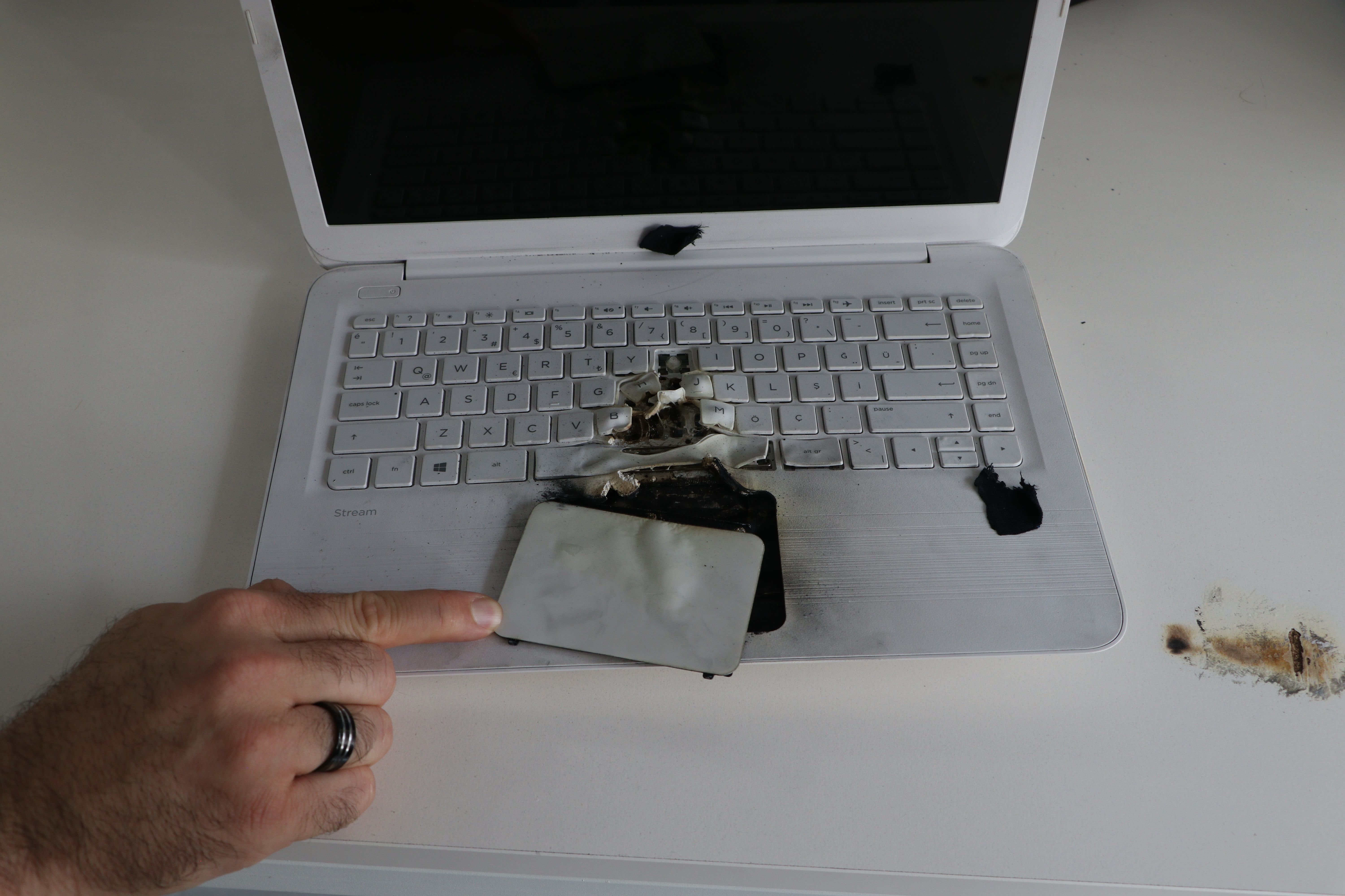 Dizüstü bilgisayar patladı: Alevleri üfleyerek söndürmeye çalıştı