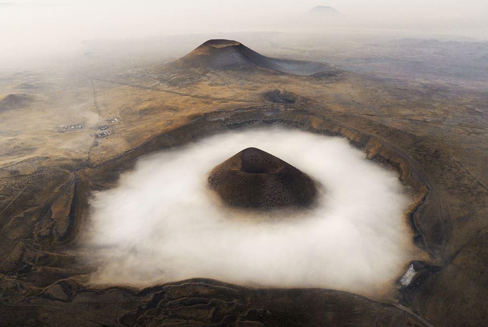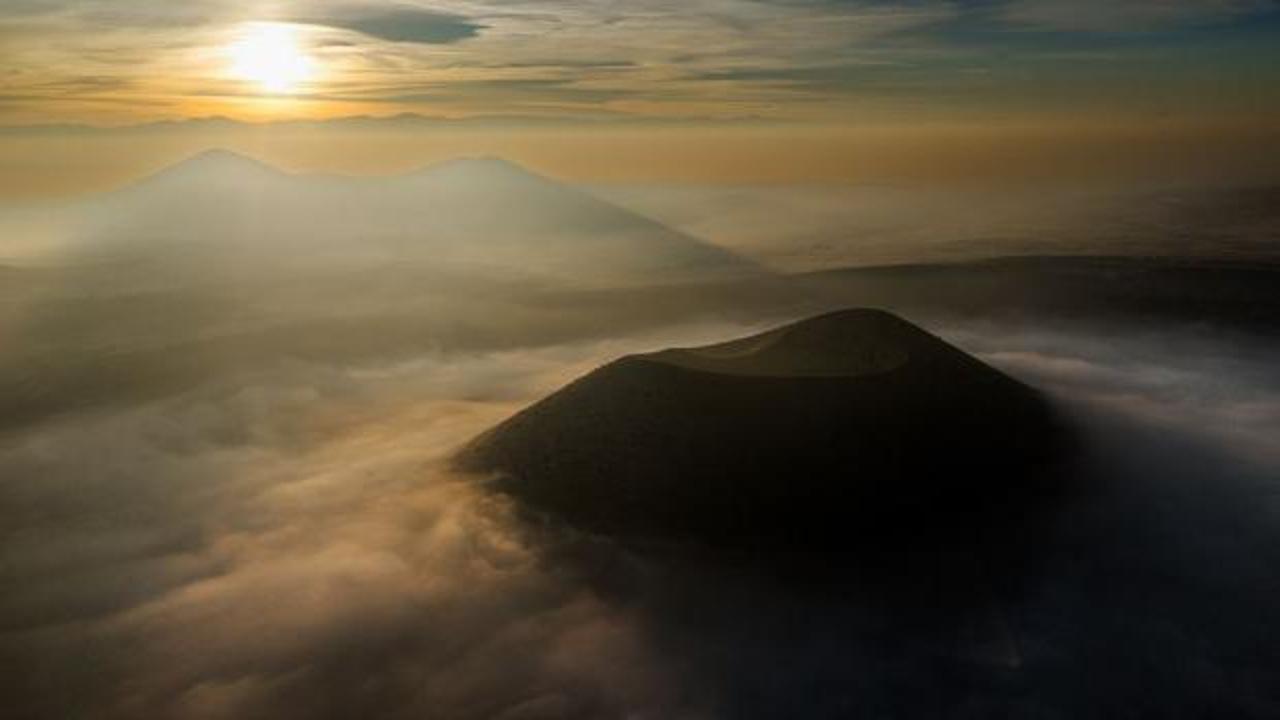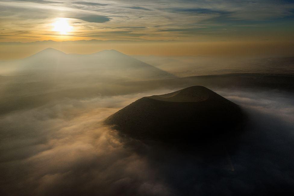 Volkanik yapısıyla dikkati çeken Meke Gölü’nde sisin zaman zaman yoğunlaşarak dağılması, göl ve çevresindeki krater yapısını farklı açılardan ortaya çıkardı.