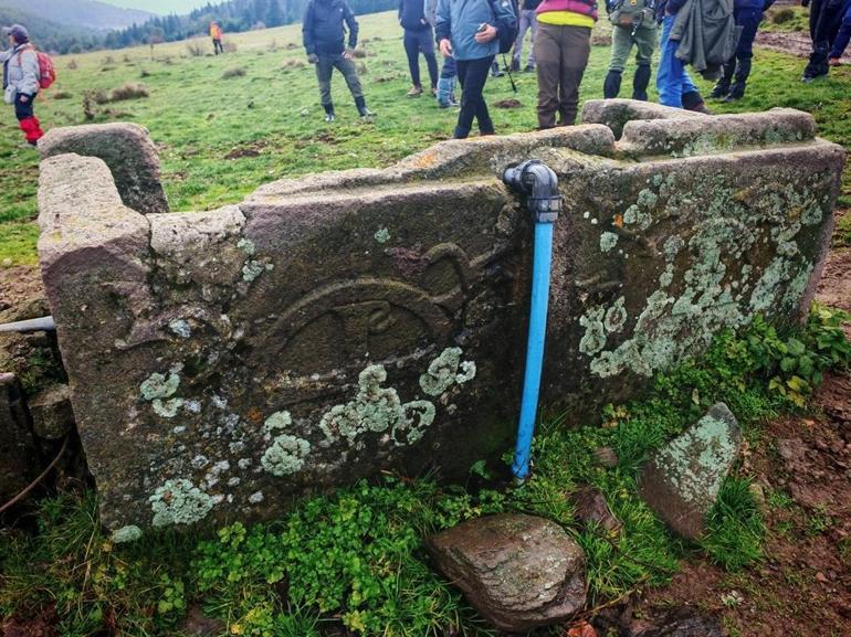 Doğa yürüyüşünde, su oluğu olarak kullanılan lahit buldular
