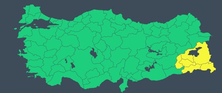 UYARI ÜSTÜNE UYARIMeteoroloji, Hakkari, Bitlis ve Van çevrelerinde kuvvetli karla karışık yağmur ve kar, Kıyı Ege ve Şırnak çevreleri ile Siirt ve Batman illerinin kuzeyinde kuvvetli sağanak yağış ve Ege'deki fırtınaya karşı vatandaşlara dikkatli olun çağrısı yaptı. Bitlis, Hakkari, Siirt, Van, Batman ve Şırnak için sarı kodlu uyarı verildi.