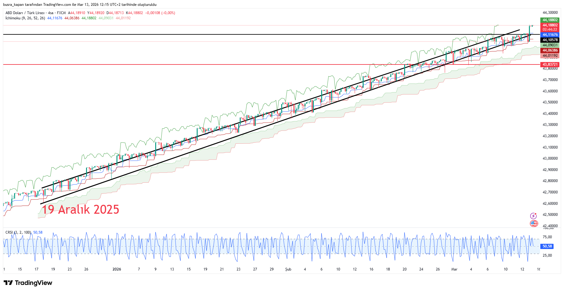 Dolar/TL kuru haftanın son işlem gününde sabah seansında 13.14'te 44,18 seviyesinde bulunuyor.