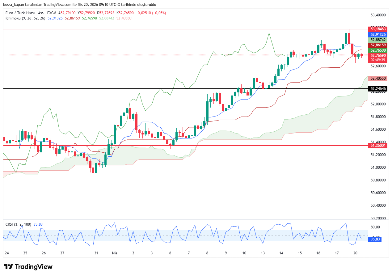Euro/TL'de de aşağı yönlü eğilimlerin olduğu görülüyor. Euro/TL geçtiğimiz hafta cuma günü 53,18 seviyesine yükselerek tüm zamanların rekorunu kırdı. Euro/TL bugün sabah seansında 09.08'de 52,76 seviyesinde bulunuyor.
