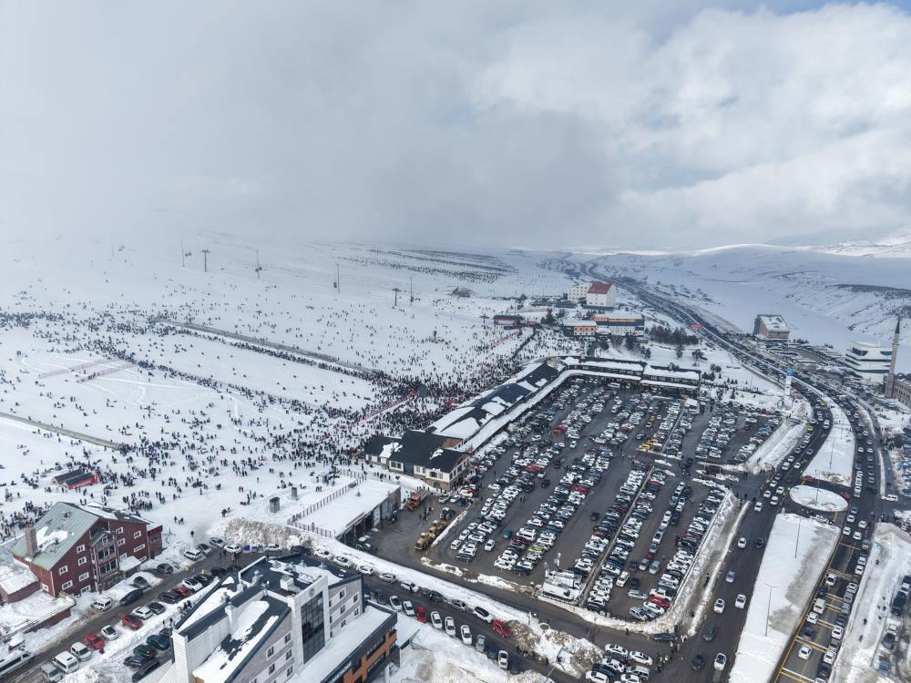 Kayseri'de gözde kayak destinasyonlarından Erciyes Kayak Merkezi, sömestirin ikinci hafta sonunda 320 bin kişiyi misafir etti. Kayak merkezindeki yoğunluk havadan görüntülendi.