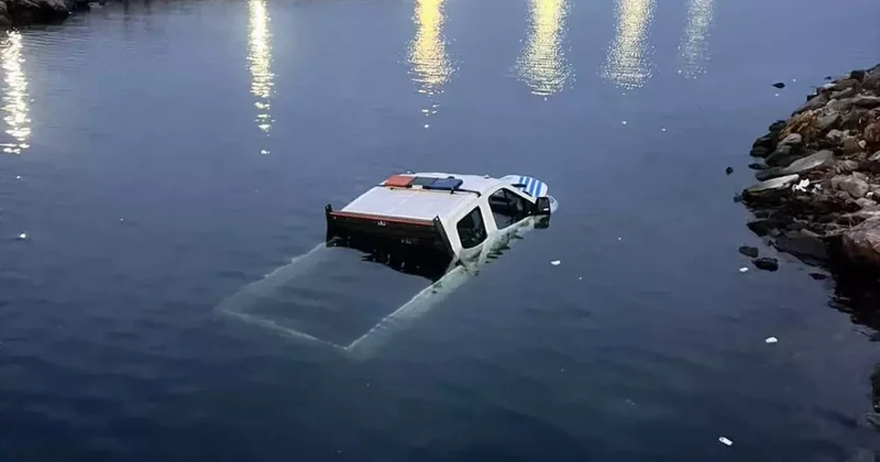 Dönüşü alamayan zabıta aracı denize böyle uçtu