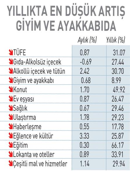 Dört yılın en düşük enflasyonu % 31.07