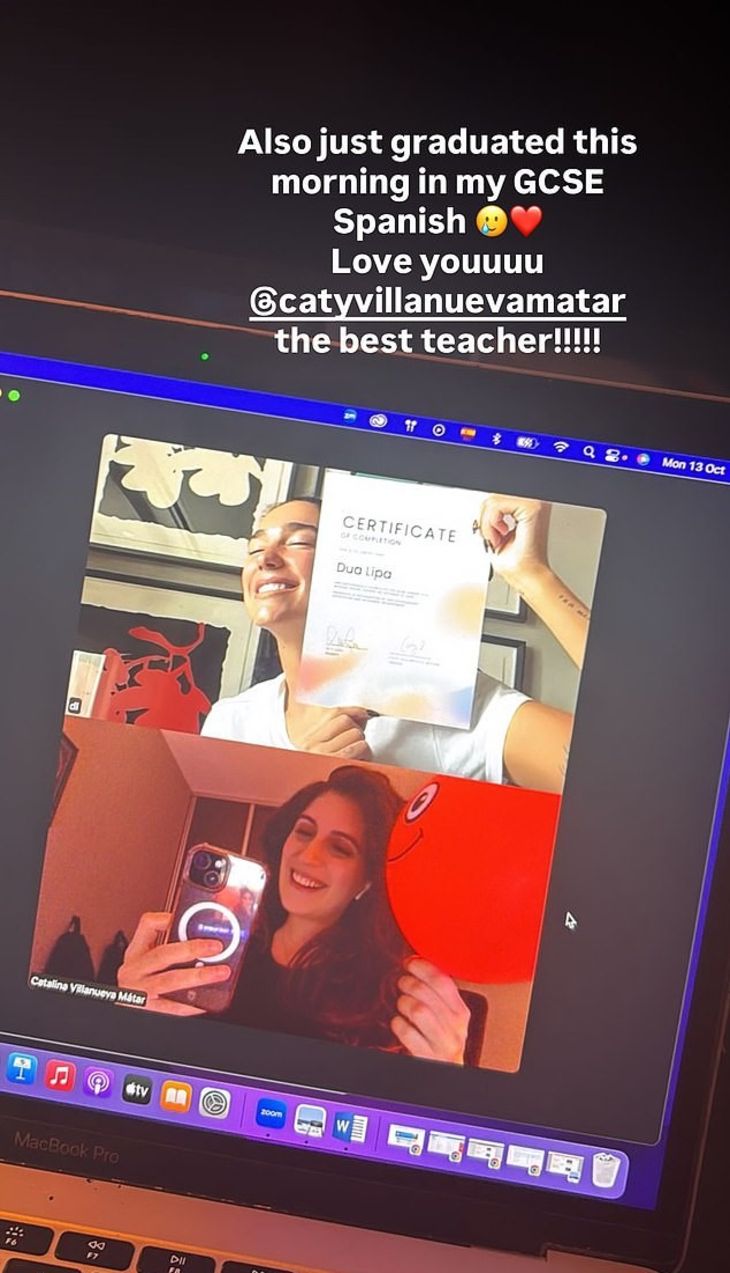 30 yaşındaki Arnavut asıllı İngiliz şarkıcı, kendisinin ve İspanyolca öğretmeninin görüntülü konuşmada çekilmiş bir fotoğrafını sosyal medyada paylaşarak, "Ben de bu sabah GCSE İspanyolcamdan mezun oldum" dedi.