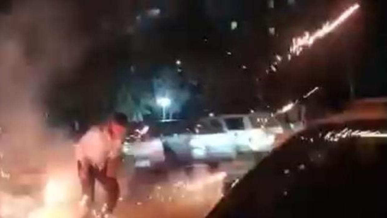 Havai fişeklerden 5'i gökyüzünde patlarken, 1'i elde patladı. Patlamanın ardından kişi, düzeneği yere atınca fişekler ateşlenmeye devam etti.