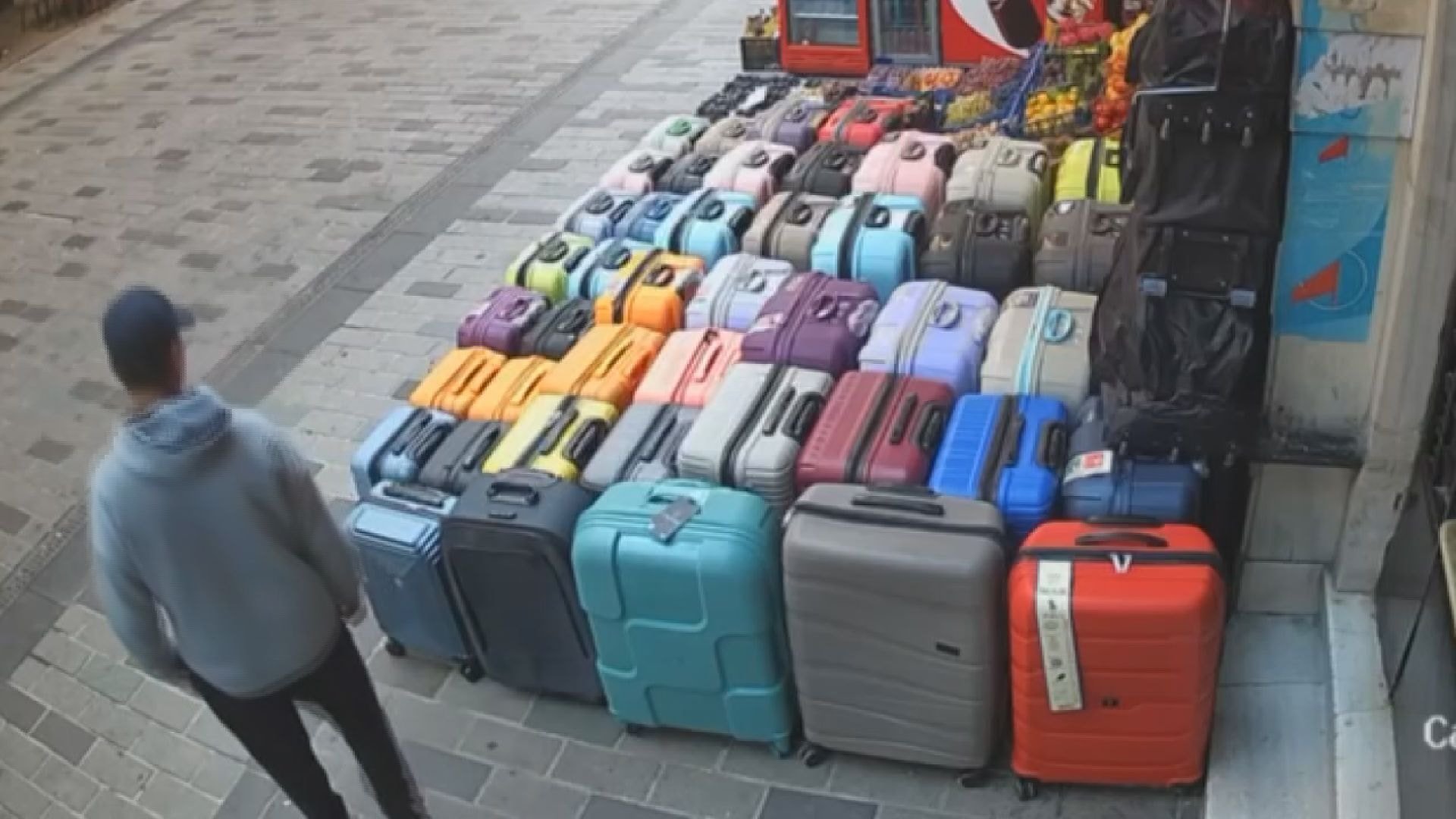 İş yerlerinden valiz ve cep telefonunun çalındığı iş yerinin güvenlik kamerasıyla kaydedildi. Görüntülerde, şüpheli Y.N.'nin valiz ve cep telefonu hırsızlıklarını gerçekleştirdiği anlar yer aldı.