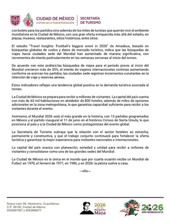 “GÜVENLİK ENDİŞESİ YOK”Başkent Turizm Sekreteri Alejandra Frausto, iptallerin güvenlik sorunundan kaynaklanmadığını vurguladı. Frausto, “Bu durum büyük uluslararası organizasyonlarda normal bir süreçtir. Bilet satışları ve maç programı netleştikçe konaklama planları yeniden düzenlenir” dedi.