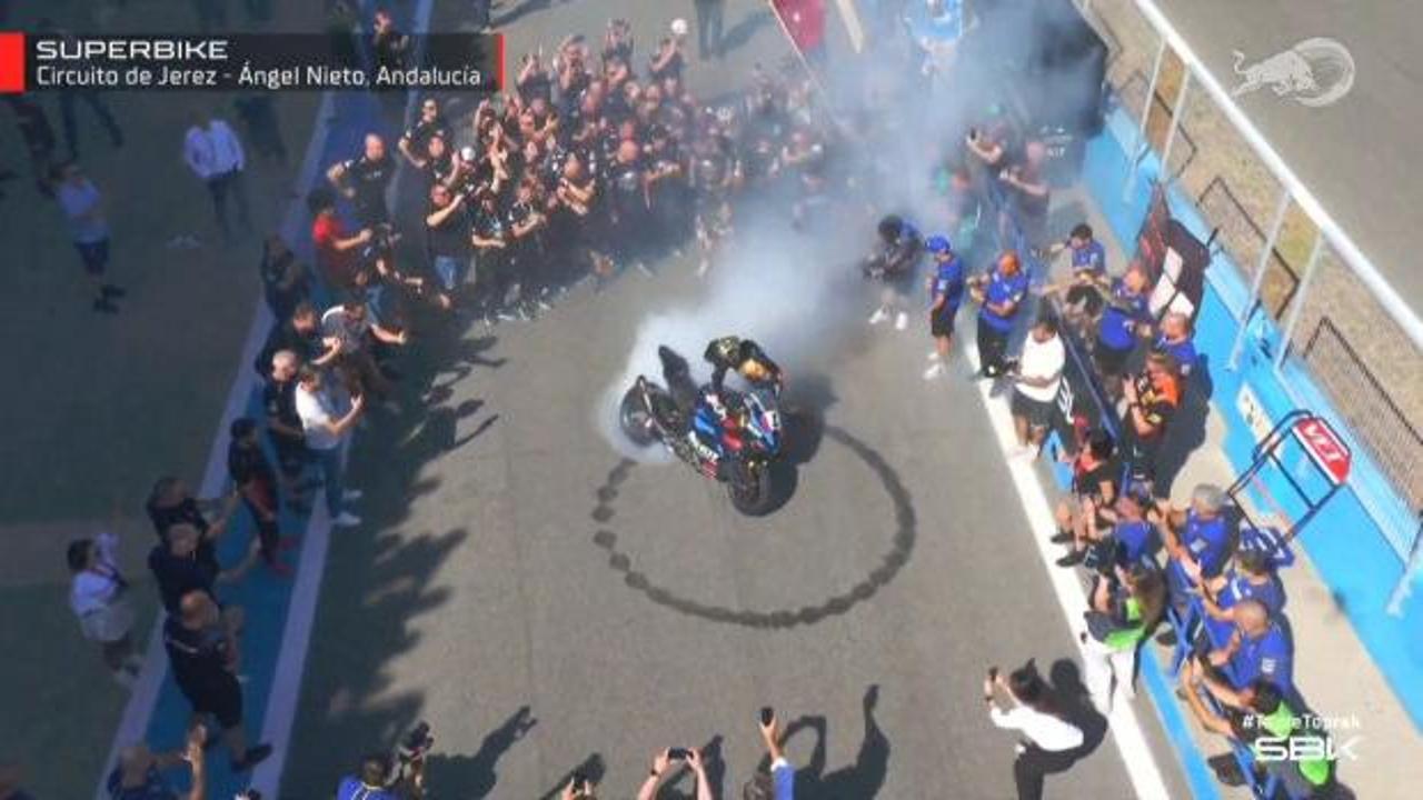 Milli sporcu, takımına ait hangarın önünde lastiğini yakarak şampiyonluğunu kutladı. Takımı da Razgatlıoğlu'nu coşkuyla karşıladı. O anlar sosyal medyada gündem oldu.