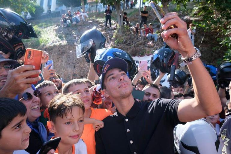 Konuşmasının ardından Toprak Razgatlıoğlu, sahnede Belediye Başkanı Özçelik ve Alanyaspor Başkanı Çavuşoğlu ile birlikte 'Erik Dalı' oynayarak vatandaşlarla eğlendi. Ardından alandaki çocuklara, gençlere ve motosiklet tutkunlarına imza dağıtan Razgatlıoğlu kasklara, tişörtlere imza attı ve hayranlarıyla selfie çektirdi.