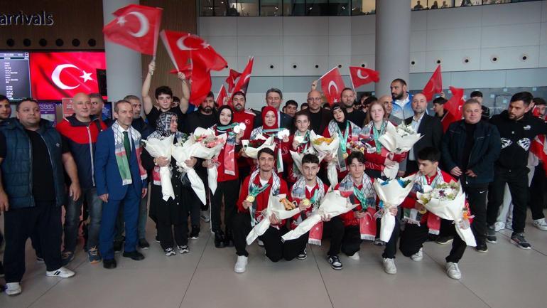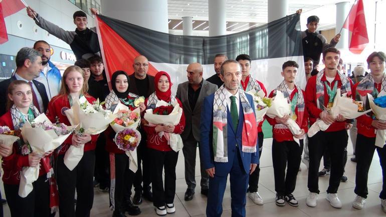 Dünya Şampiyonu Wushu Milli Takımı, Türk ve Filistin bayraklarıyla karşılandı