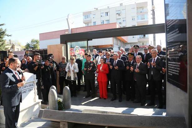 Birinci Dünya Savaşı ve Kurtuluş Savaşı'nın kahramanlarından, dünya askeri tarihinde ilk defa bir uçak gemisi batıran Türk subayı olarak bilinen Topçu Yüzbaşı Mustafa Ertuğrul Aker'in Andızlı Mezarlığı'nda Antalya Valiliği'nce yaptırılan anıt mezarı, Cumhuriyet Bayramı'nda açıldı. Açılışa; Antalya Valisi Hulusi Şahin, Garnizon Komutanı Tümgeneral Sinan Eren, Büyükşehir Belediyesi Başkan Vekili Büşra Özdemir, askeri erkan ve çok sayıda davetli, vatandaşlar ve aile üyeleri katıldı.