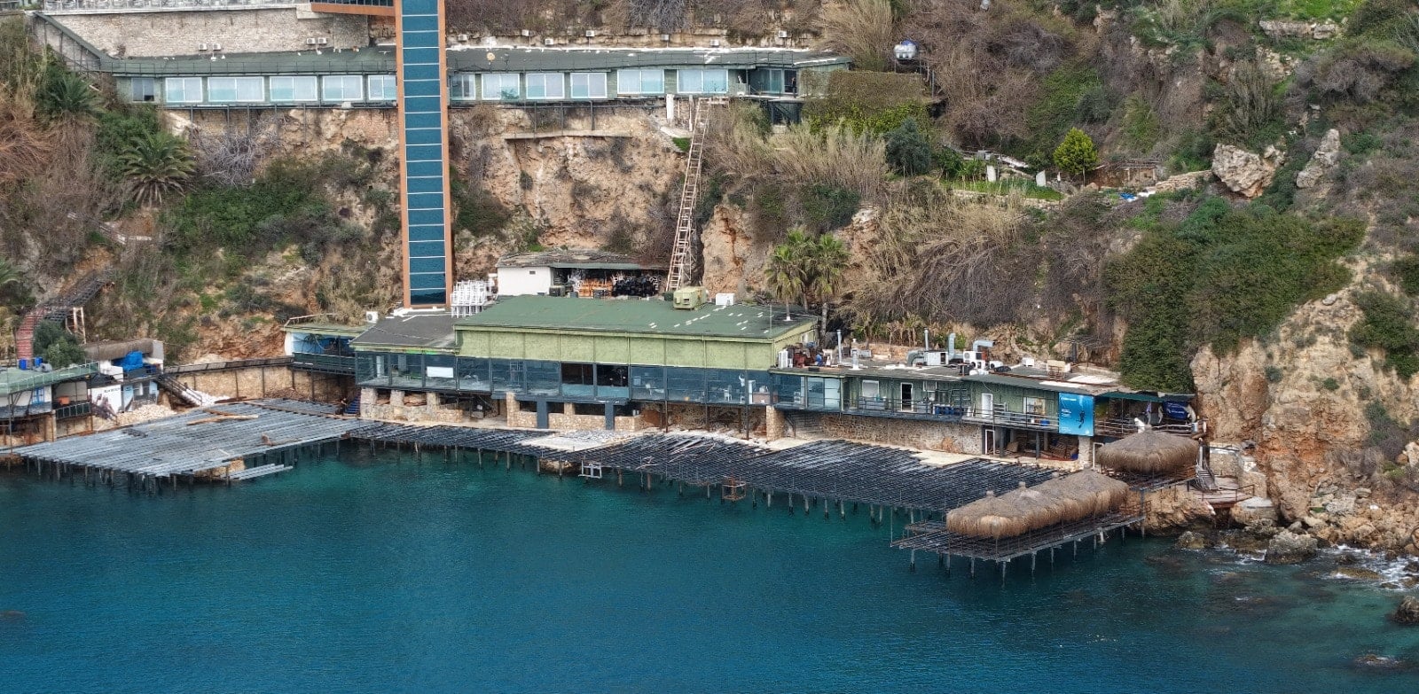 APARTMANIN ÖZEL ASANSÖRÜ MÜHÜRLENDİÖte yandan Deniz Mahallesi 133 Sokak'taki Adalya Apartmanı'nın 40 yıl önce üzerinden delinerek asansörlerle inilip tünel ve mağara içine yapılan betonarme baraka yapı ve oradan denize inilebilen merdivenli plajı Muratpaşa Kaymakamlığı'nın talimatıyla Muratpaşa Belediyesi tarafından mühürlendi. Falezler üzerindeki işgallere yönelik geçen yıl da Antalya Valiliği tarafından bir otele ait asansör ve denize sıfır plaj yapısı kaldırılmıştı.