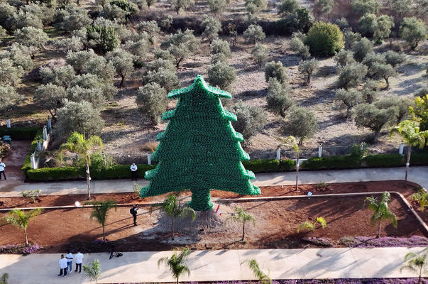 Lübnan'ın milli sembollerinden sedir ağacını temsil eden yapının hazırlanmasında 450 binden fazla yeşil plastik şişe kullanıldı.